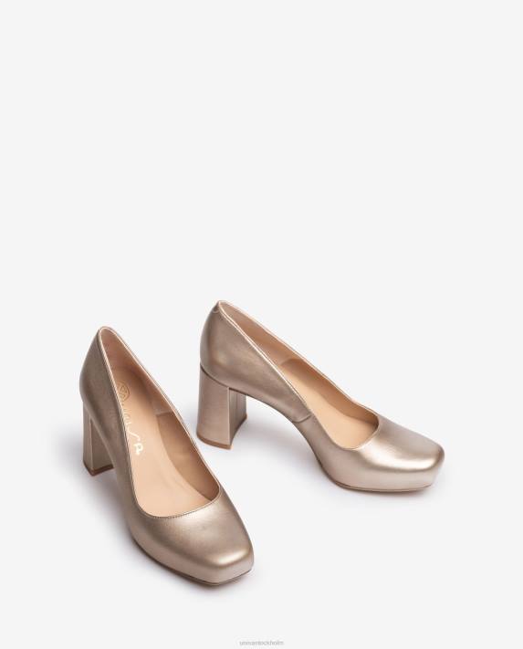 pump med fyrkantig tå tillverkad i läder med metallisk effekt. inre 1,7cm plattform och en 8cm häl i matchande ton. lätt, halkfri, gummisula. roliga allierade för varje dag.